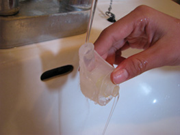 お湯で、ノズル内のスポンジやメッシュの詰まりを洗い流します