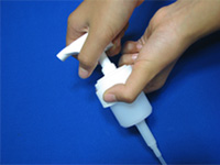 お湯か水を使用して、何度かプッシュすることで直ります。→「泡工房の直し方(1)」を参照ください - ポンプ内のシリコン(潤滑油)が消耗してしまった場合