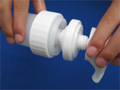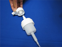 ※ポンプの構造が見えるように、泡工房AWAWAN500mlの透明ポンプで撮影しておりますが、泡工房 レギュラー350ml、ジャンボ800mlの白いポンプも同じ構造です。
